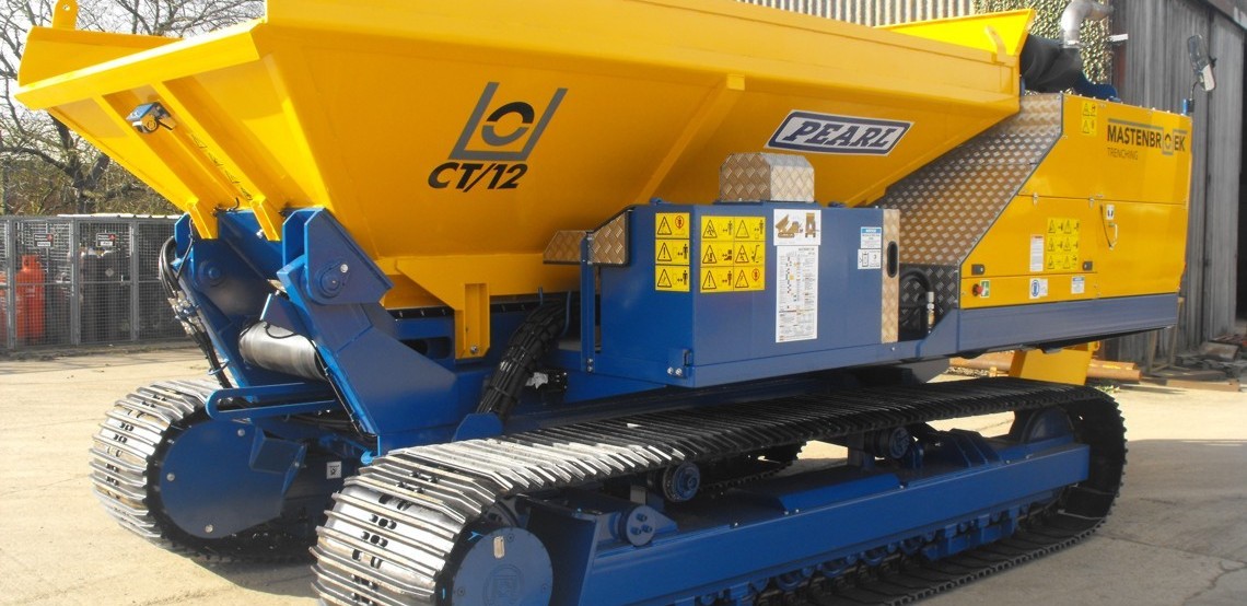 The first production Mastenbroek CT/12 gravel cart of the year was collected by its new owner Pearl Land drainage at the weekend. This machine is to work with the Mastenbroek drainage trencher they purchased last year. The CT/12 machine was supplied with an optional front gravel hopper as well as the front swing conveyor discharge system.