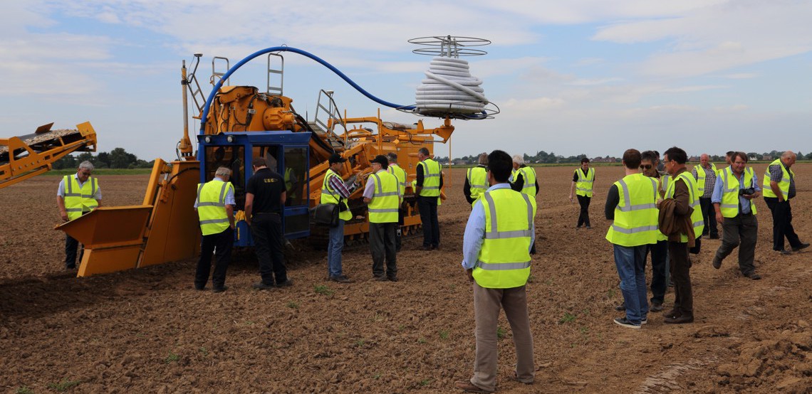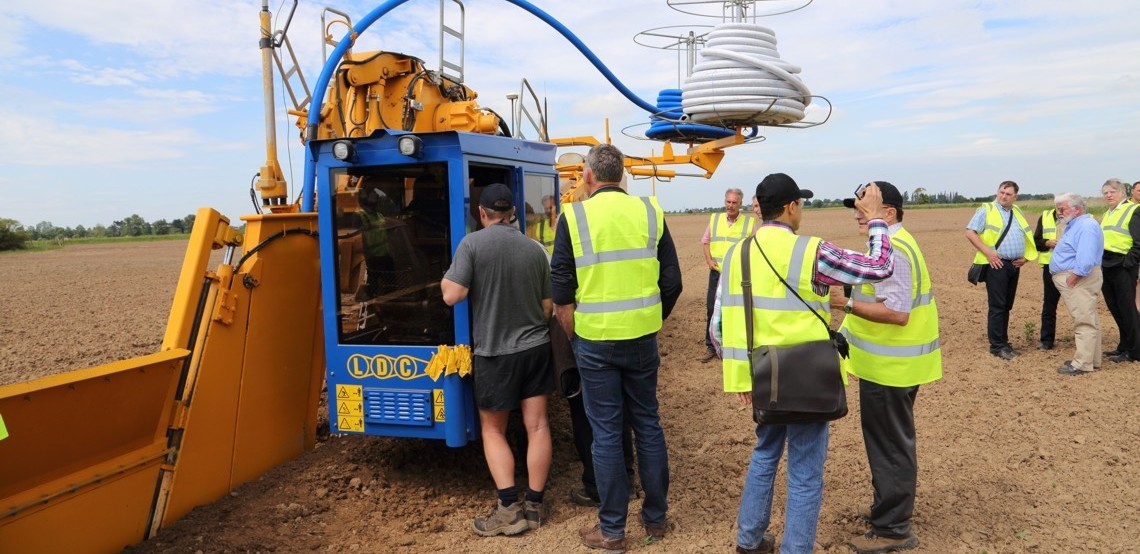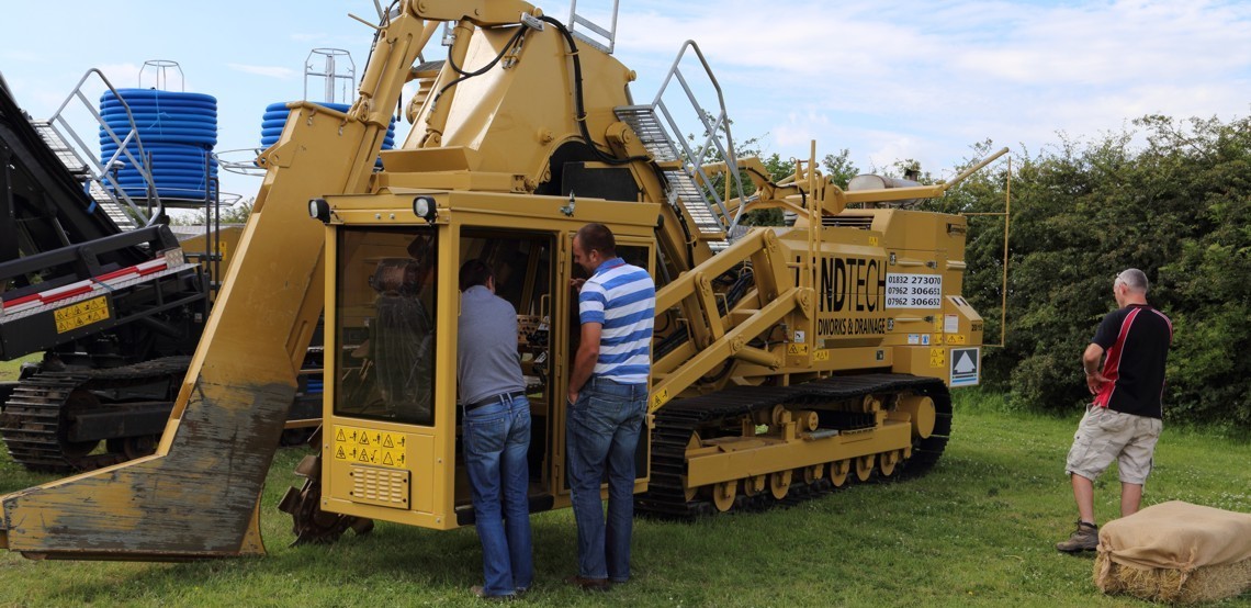 The first stop had the very latest Mastenbroek 30/20 drainage trencher using Trimble GPS which not only provides depth and grade control but also machine autosteer. Following the trencher was a Mastenbroek CT12 crawler for the accurate placement of backfill into the trench.